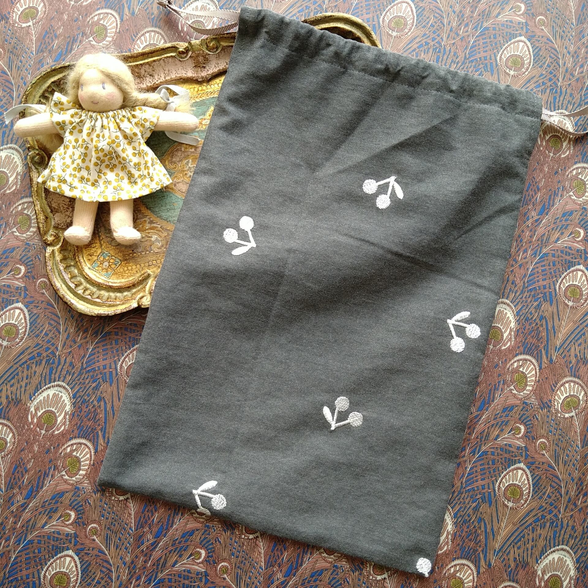 上履き袋・給食袋 30×20【刺繍チェリー】